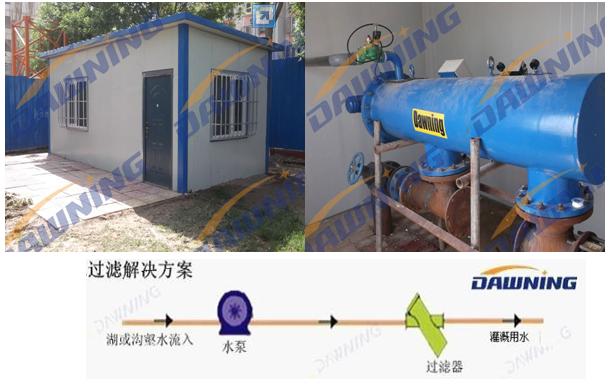 城市公共绿地、公园绿地、景观水系、河湖补给用水随着人们物质文化生活水平的提高,人们对身边的景观环境要求也越来越高,政府部门对园林绿化尤为重视,提出加大绿地面积,改 境,创建园林城市、生 态城市,但是绿化用水量过高早已成为不争的事实。如何在绿地用水紧张的情况下,满足不断增长的绿化用水需求,应当优先考虑节能环保设备,来保证污水的再次利用。现代化灌溉系统也都需要将供水中的颗粒物去除。农业灌溉用水中含有大量有 机悬浮物如藻类、花蛤、贝壳、蜗牛、臭虫、蠕虫和沙子、淤泥,这些杂质如果不过滤去除将会堵塞滴淋器、喷射器、喷洒器、电磁阀和肥料喷射器,导致庄稼产量减少,并产生褐色污迹。如果用手工清洗滴水器管路,工序会相当的烦琐,并且效果有限。